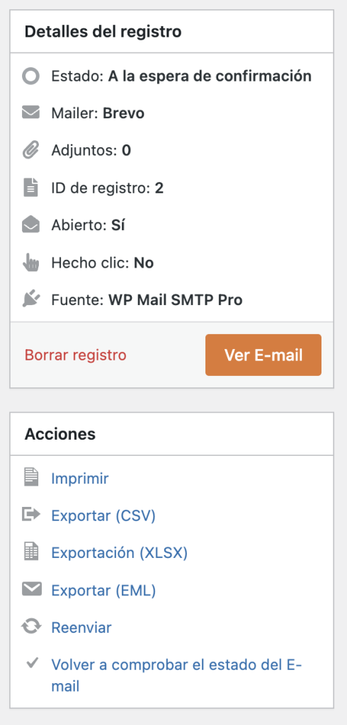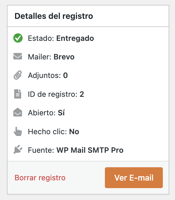 -> Si está el circulo sin ningún color, puede ser un error de conexión en la validación pero eso no quiere decir que el email no se haya enviado. - From: Quién envió el mail (siempre será el mail de tu plataforma).