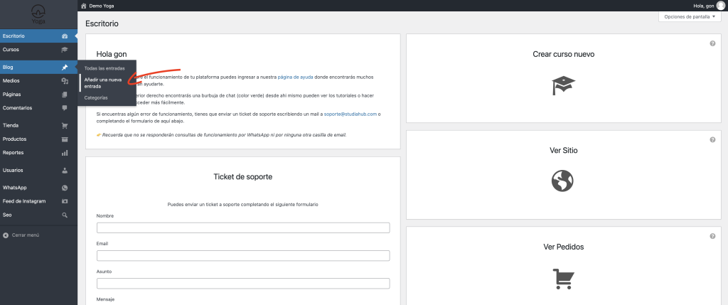 En el menú de la izquierda, haz clic en “Blog” y luego en “Añadir nueva entrada”.