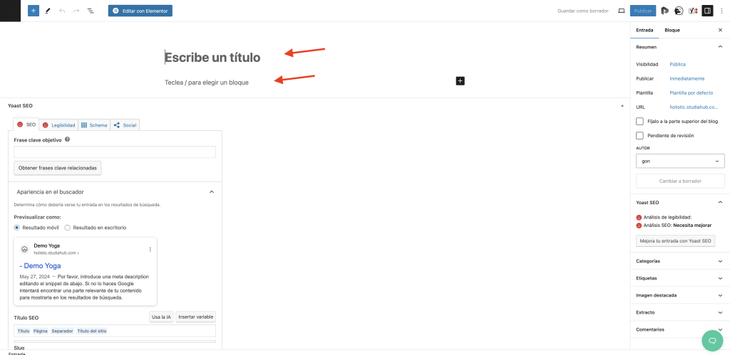 Escribe el título de tu entrada en el campo “Escribe un título”.
