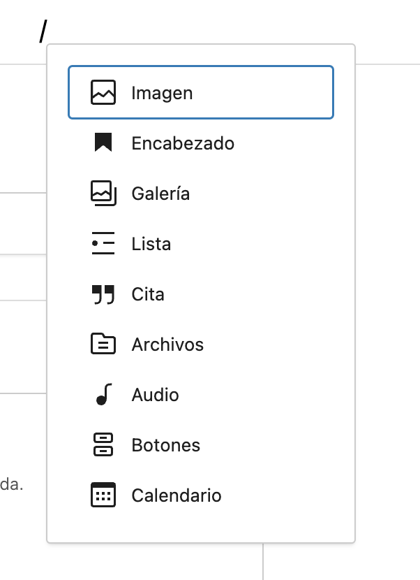 Escribe o pega el contenido de tu entrada donde dice “Teclea / para elegir un bloque”