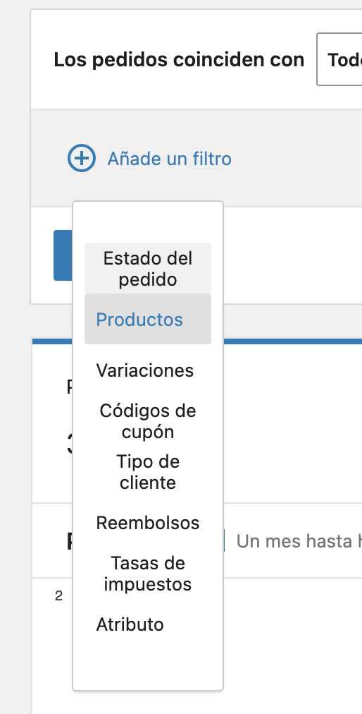 También puedes puedes aplicar filtros, para ver por ejemplo, las ventas de determinados productos. Para esto, tienes que hacer click sobre el desplegable que dice “Todos los pedidos” y seleccionar “Filtros avanzados”.