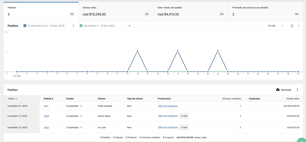 Puedes ver en la captura anterior, que el primer pedido tiene un valor de 13.000 y los siguientes de 125 y 115. Esto es porque en realidad, el valor de 13.000 es en pesos argentinos y no en dólares.
