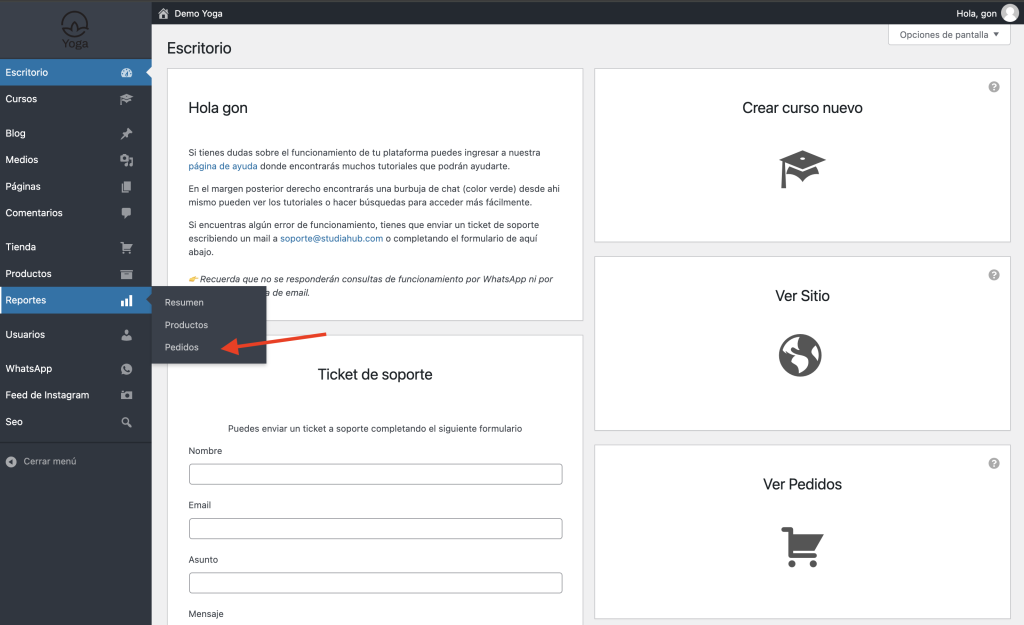 Para analizar las ventas de tu plataforma, tienes que ingresar en “Reportes” – “Pedidos” desde tu panel administrador.