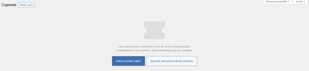Si es la primera vez que creas un cupón, te saldrá esta pantalla: