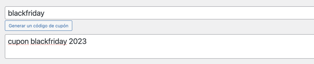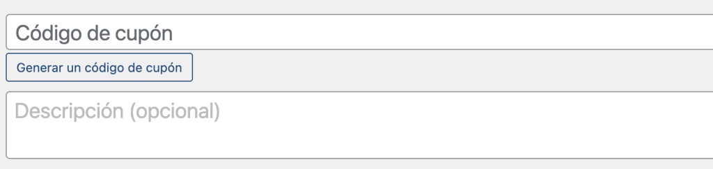 Aquí tienes que ingresar el código del cupón que quieres crear y si deseas, puedes poner una descripción para luego poder acordarte porque creaste ese cupón: