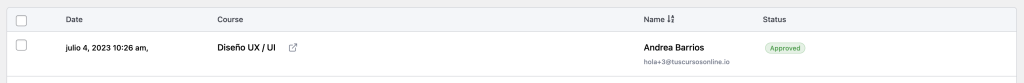 Fuera de estos casos, lo más seguro, fácil y menos trabajoso siempre es realizar la venta desde la plataforma, donde tanto la creación del usuario-alumno como el curso que se le asigna, se realiza de forma automatizada sin que tengas que hacer nada.