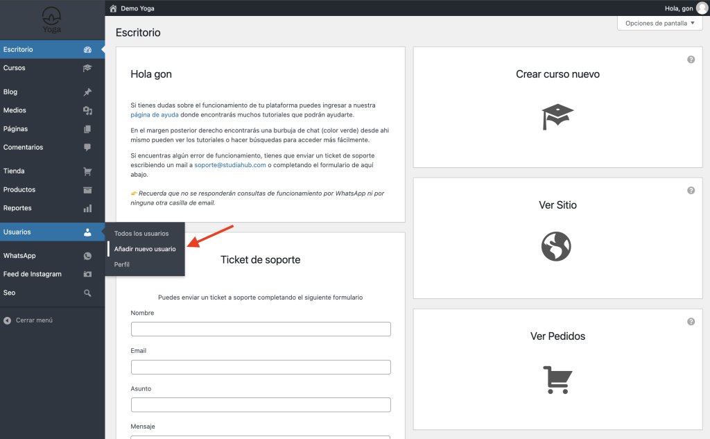 Dicho esto, aquí te explicamos cómo crearle un usuario-alumno a la persona y asignarle el curso que desees: